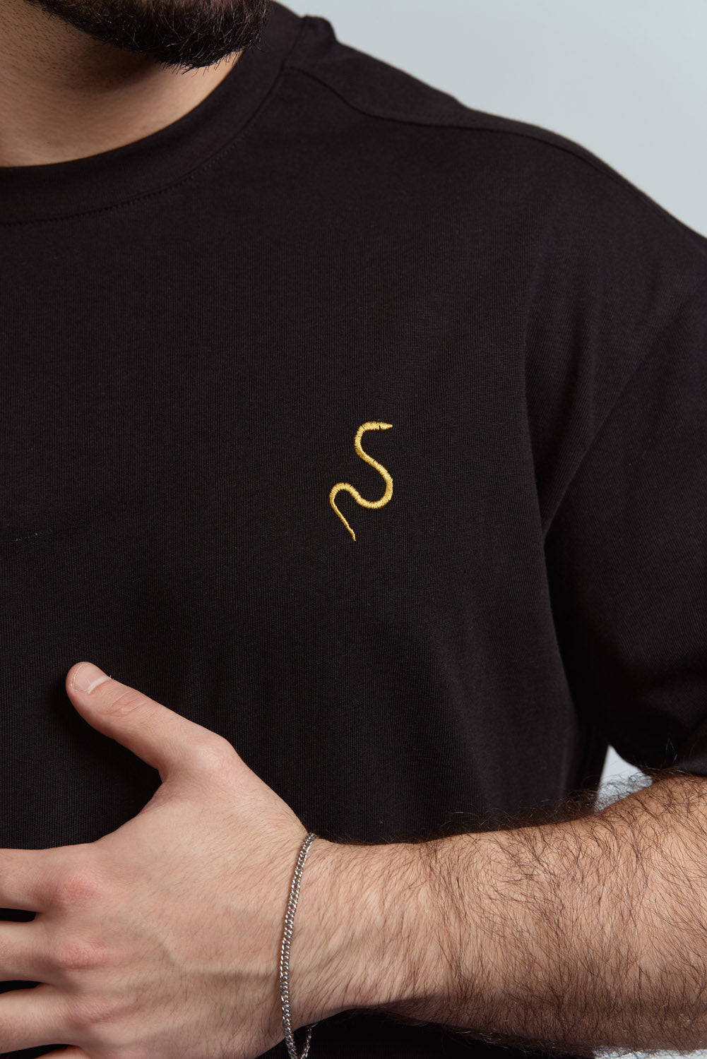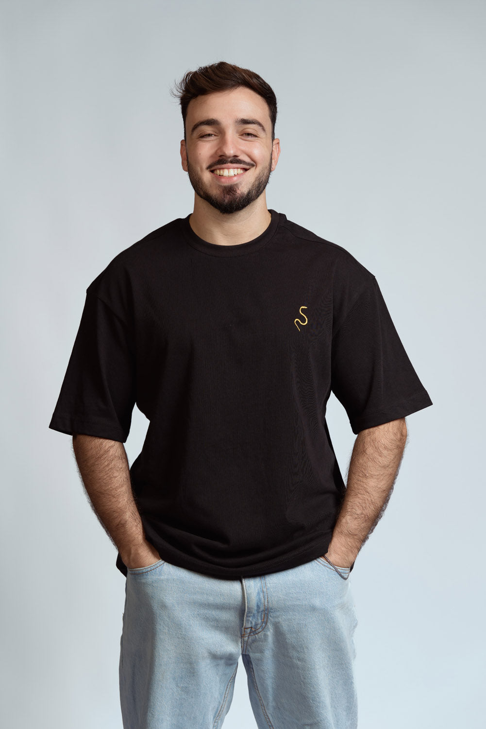 אוברסייז שחורה כותנה 100% הדפס גדול בגב
