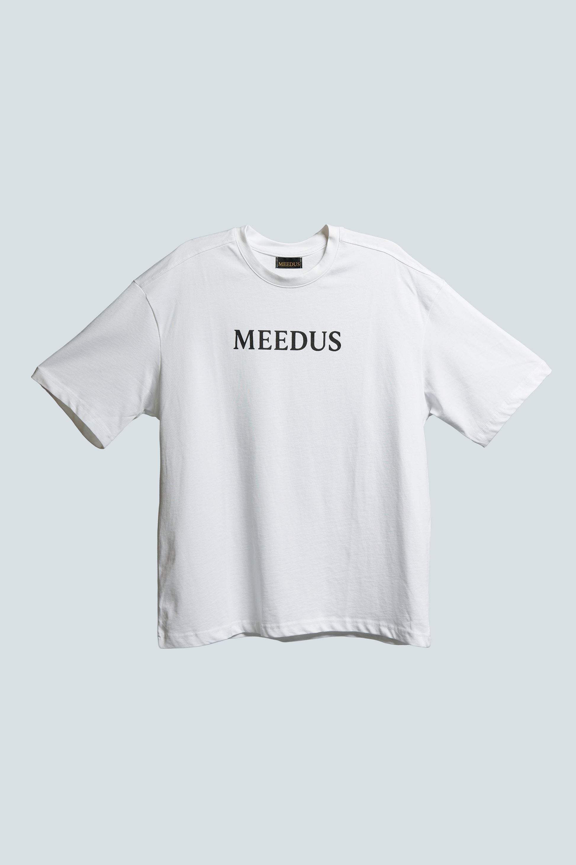 אוברסייז לבנה 100% כותנה כיתוב מידוס