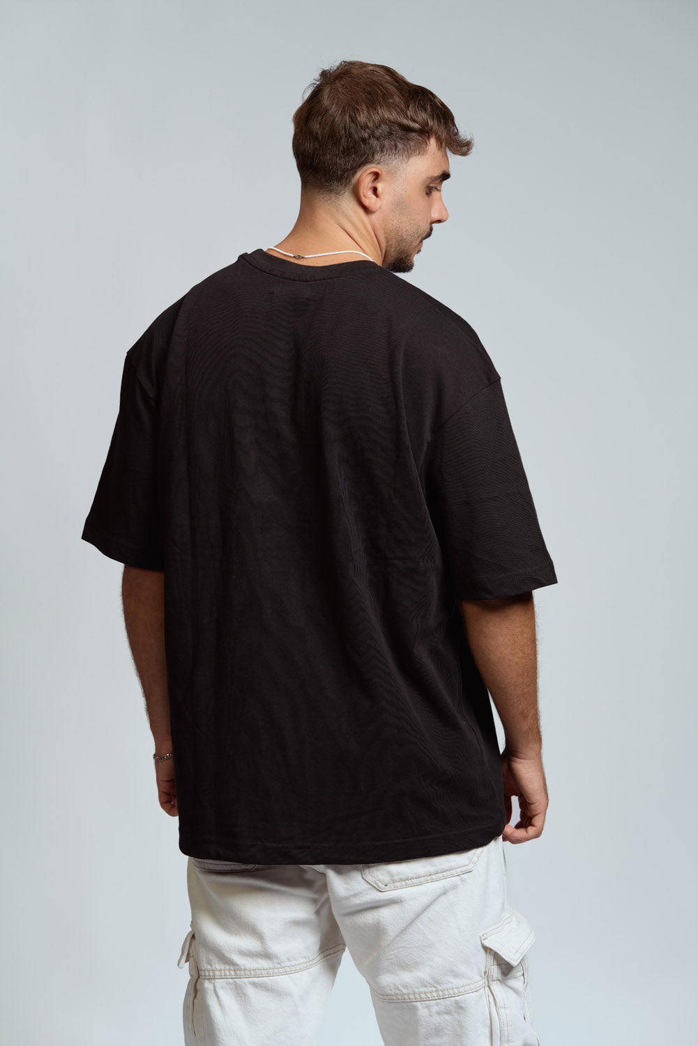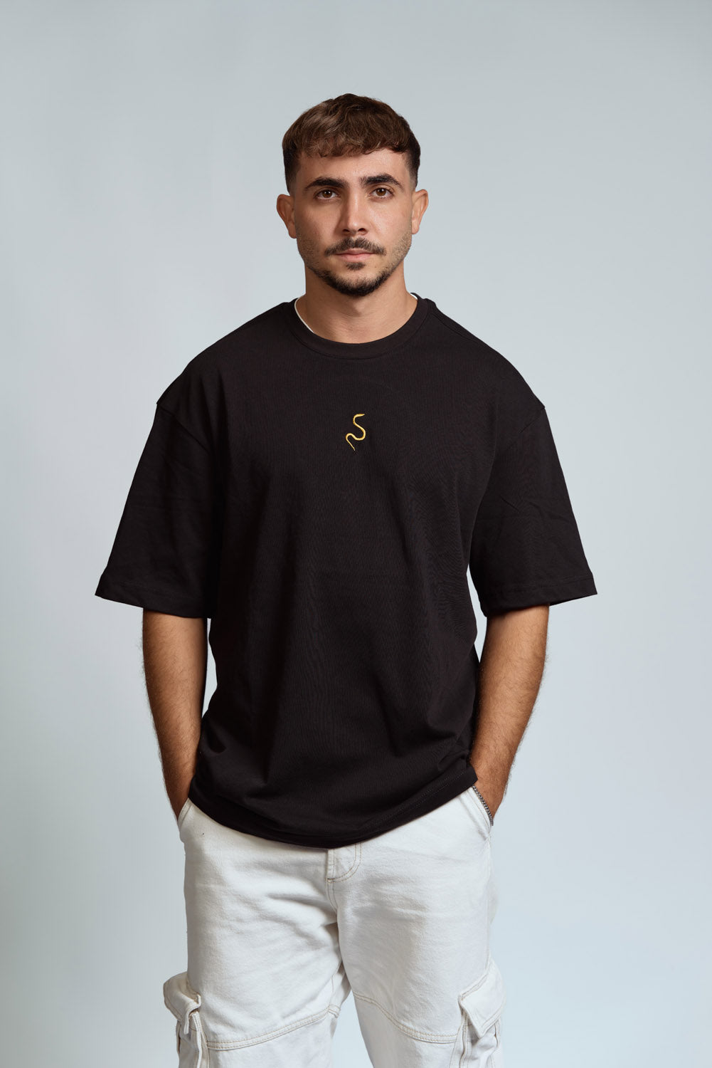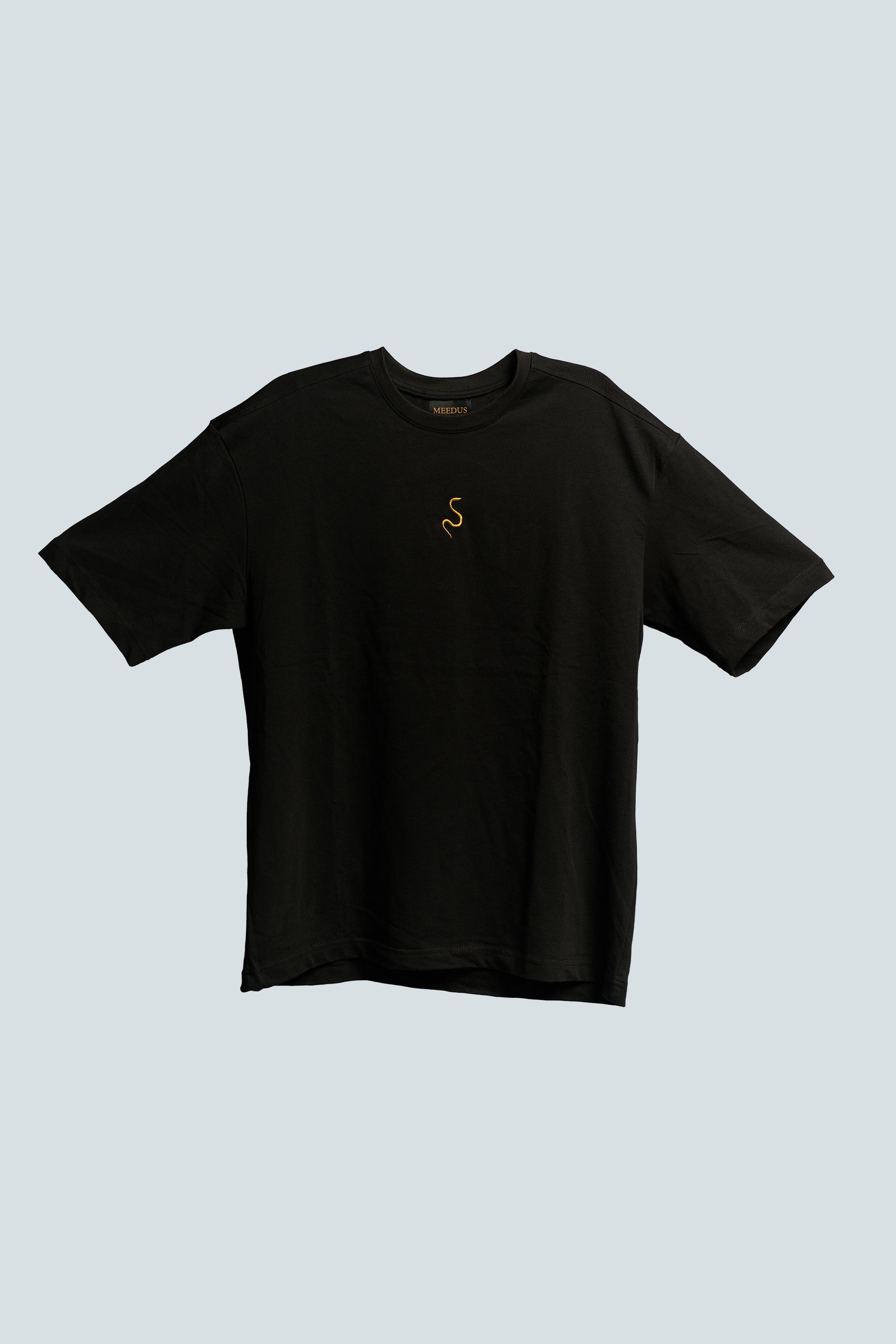 אוברסייז שחורה כותנה 100% רקמה נחש חלקה